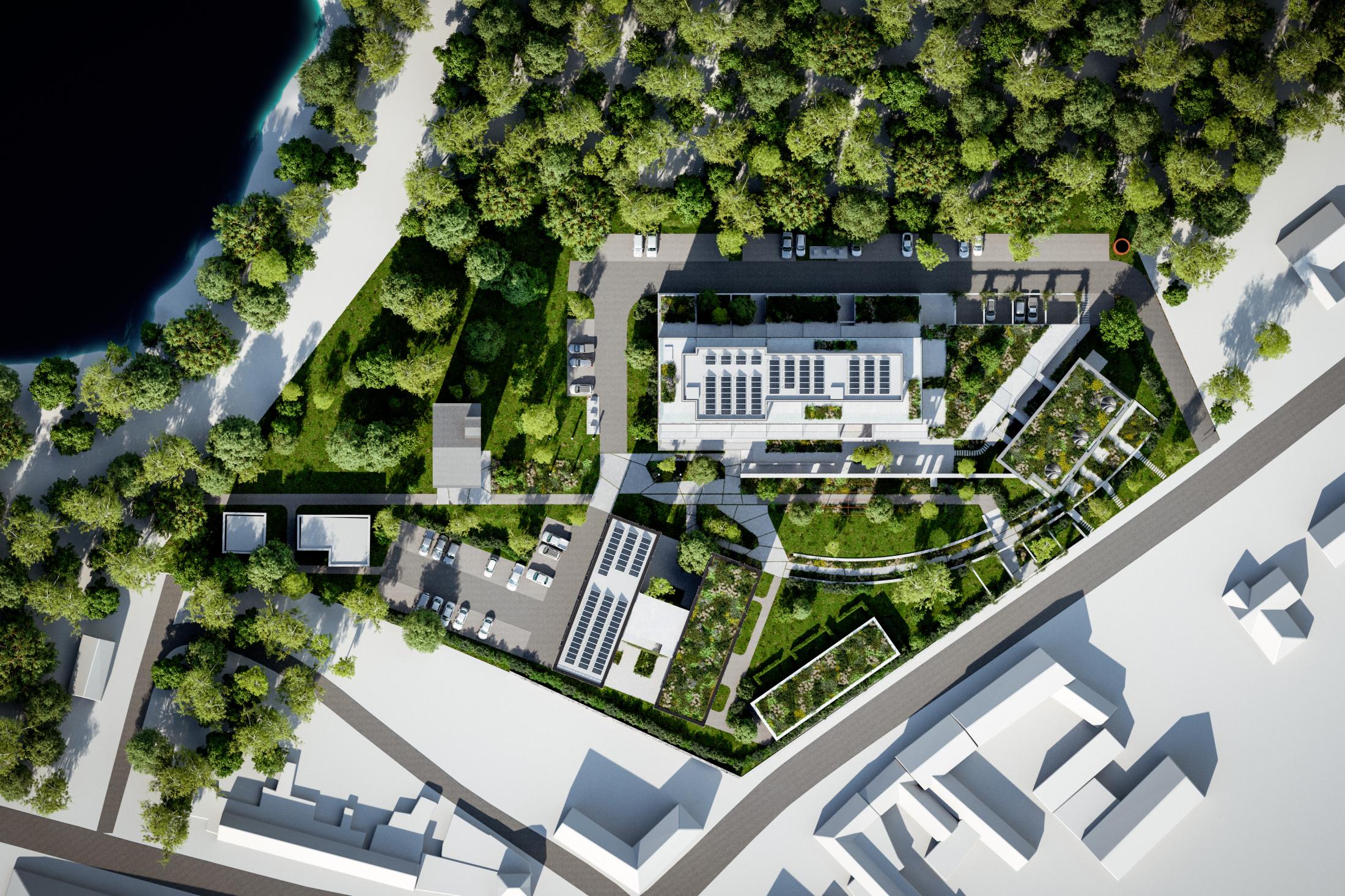 - gestion de l’eau via des toitures vertes.