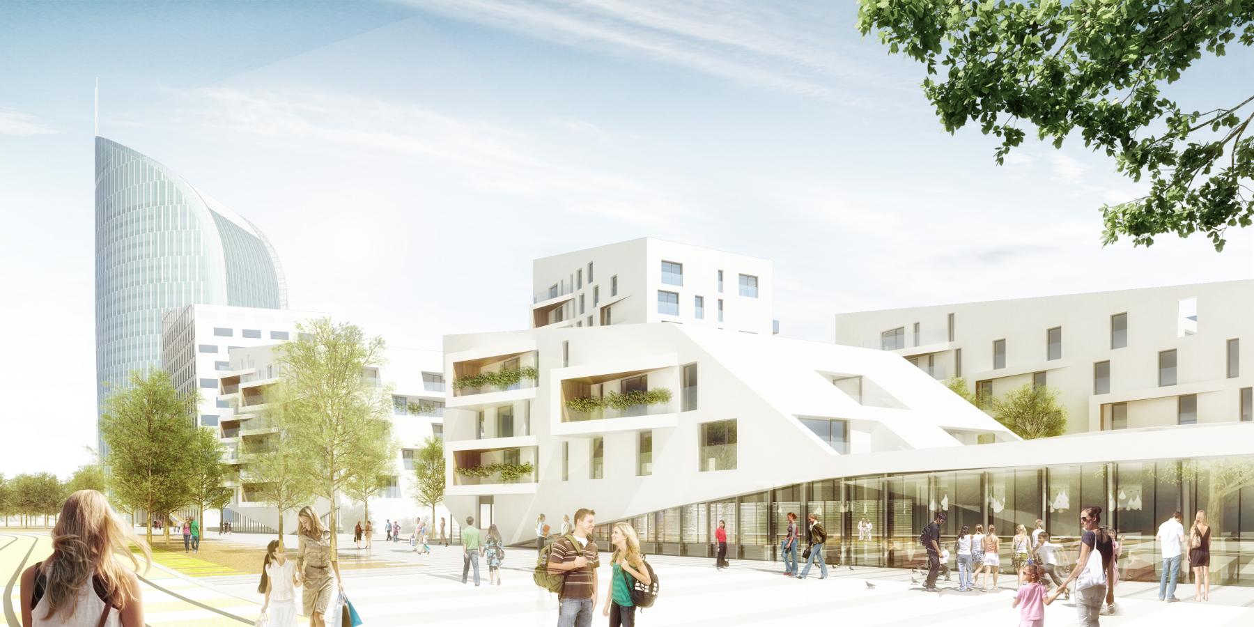 4 311 m² d’espaces de coworking « Silver Square », - cinq immeubles résidentiels (L1, L2, L3, L4, L5) de 16 652 m² hors-sol dont le bâtiment L2 de 5 377 m²consacré au co-living Yust (Young Urban Style),